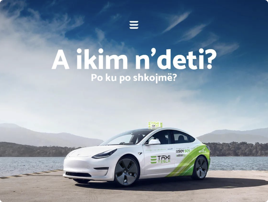 Udhëtoni në komoditet dhe luks me Taxi Tesla, duke përjetuar përfitimet e teknologjisë elektrike dhe duke kontribuar për një mjedis më të pastër. Zgjidhni një mënyrë inovative dhe të qëndrueshme për të arritur destinacionin tuaj, kudo që të jeni. Me shërbimin tonë të besueshëm dhe modern, çdo udhëtim bëhet një përvojë unike dhe e kënaqshme